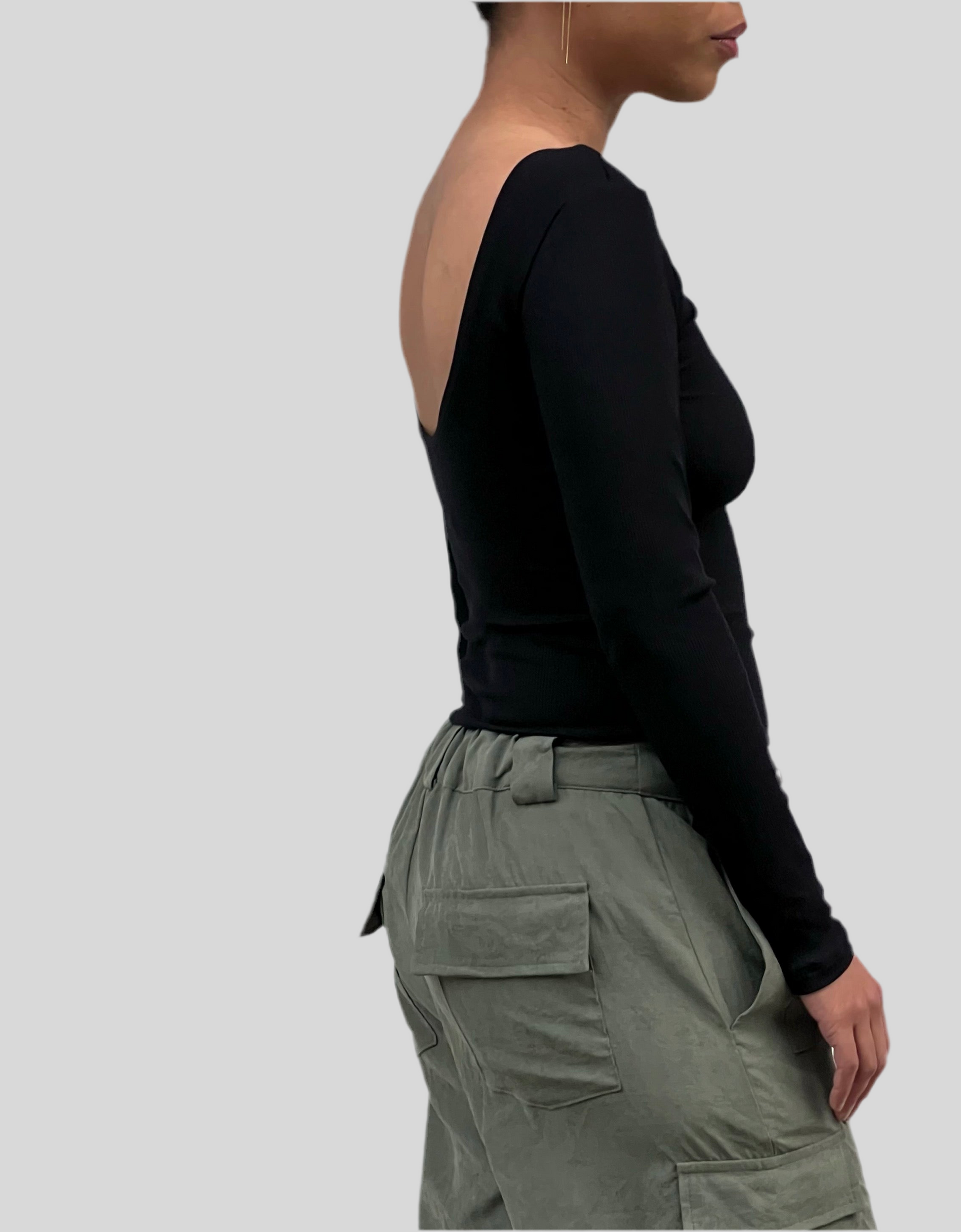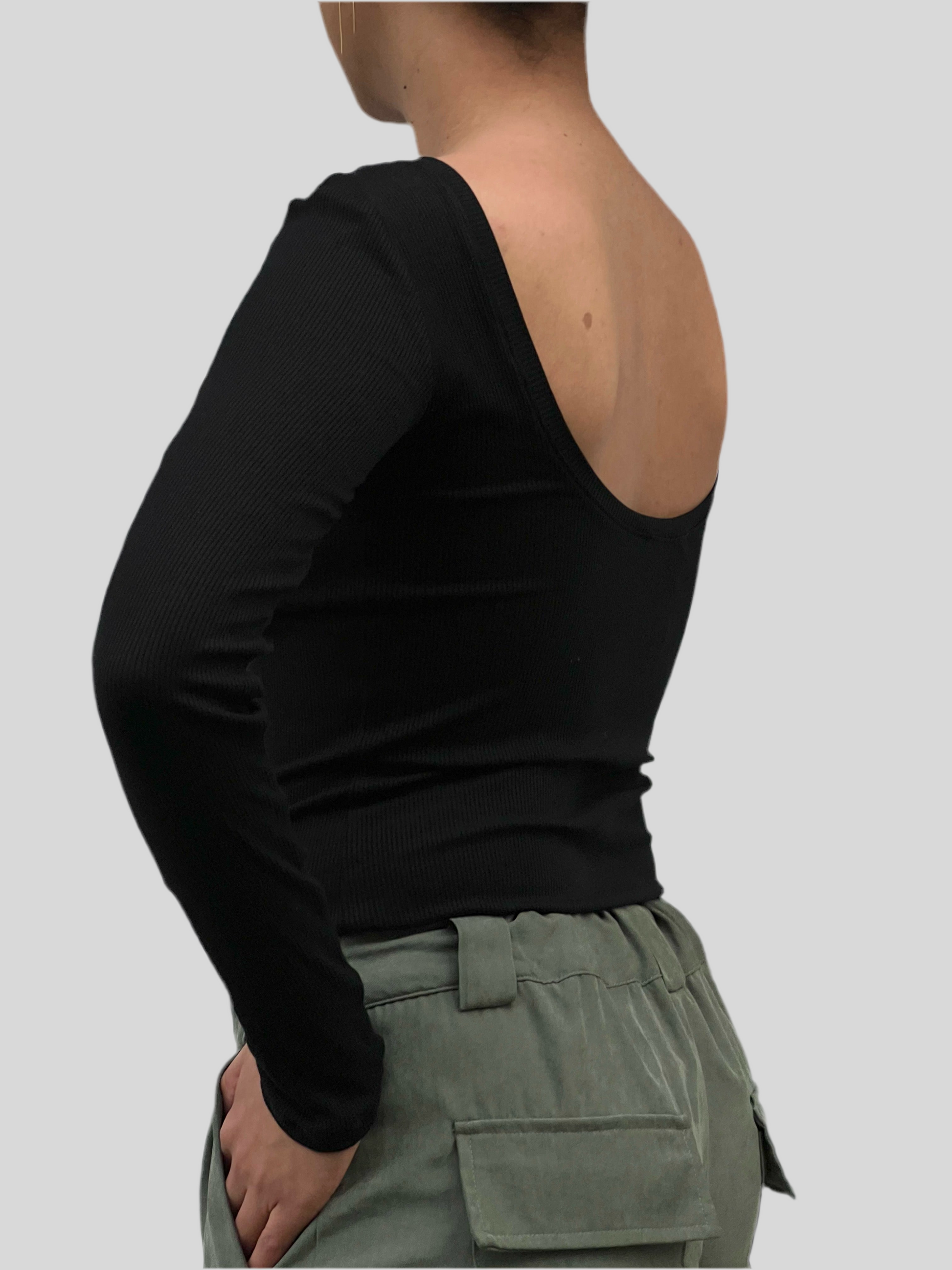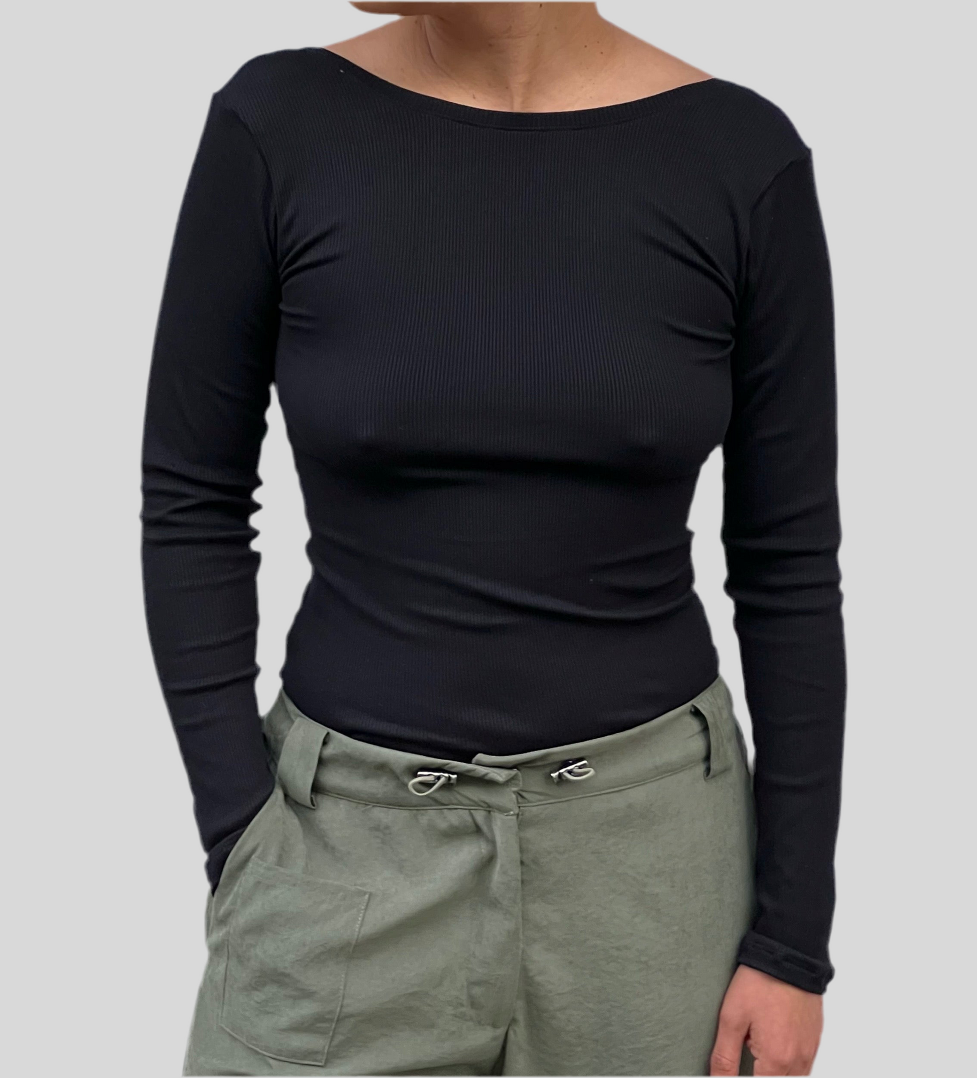 Polo básico de manga larga con escote tipo bote y espalda semi descubierta