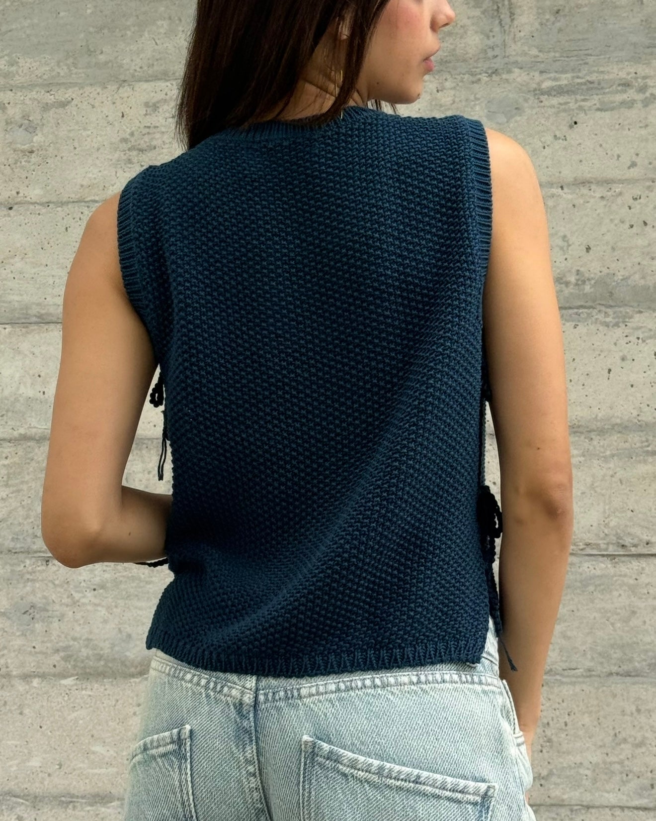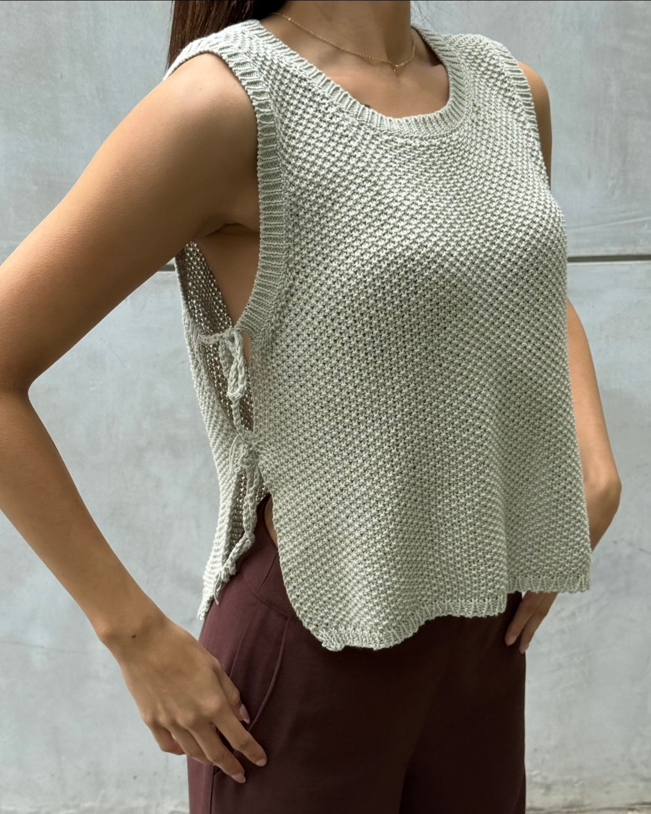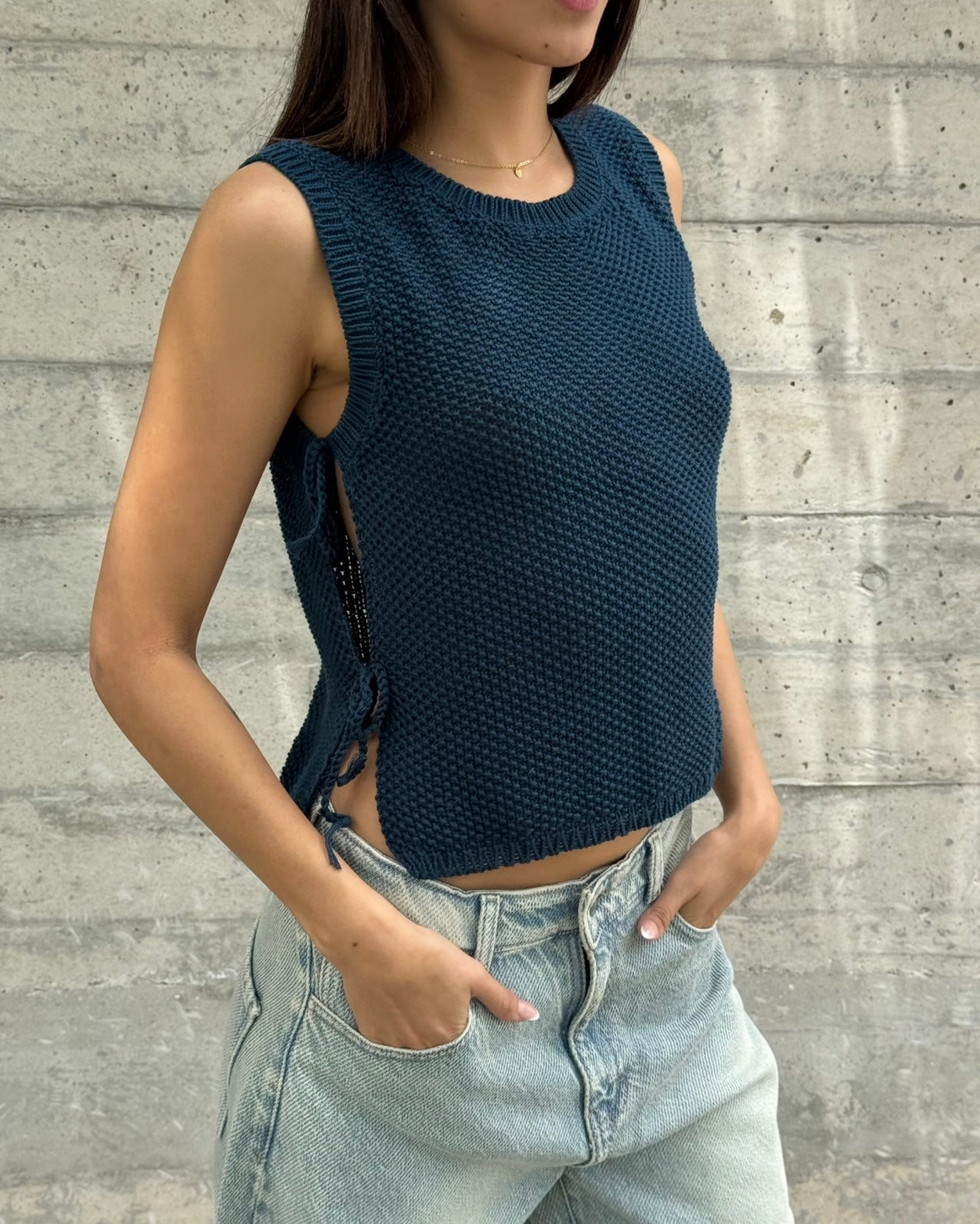 Top tejido 100% algodón pima, suave, fresco y con caída estructurada. Diseño lateral con amarre y textura marcada que le da un toque minimal y moderno. Perfecto para looks relajados pero con estilo.